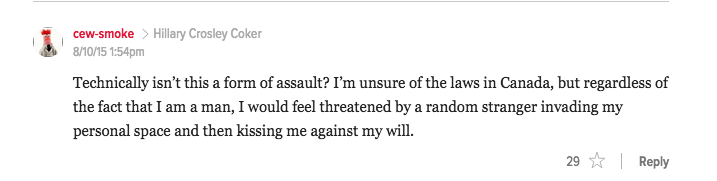 And now feminist website Jezebel is calling on their followers to hunt down and help prosecute, or at least persecute, this young man. The headline, “Have You Seen This Canadian?” is a direct call for action for the followers to identify and release information on this man. If charged, he could actually face legal consequences for a petty complaint.